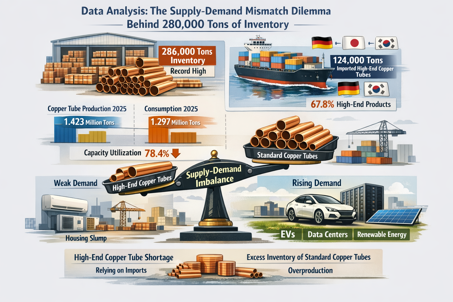 The rozbieżność strukturalna popyt na rynku niższego szczebla jeszcze bardziej pogłębił niedopasowanie podaży do popytu. The branża klimatyzacyjna i chłodnicza , największy konsument rur miedzianych, odpowiada za 58,7% całkowitego popytu. Jednakże pod wpływem dwóch kolejnych lat ujemnej dynamiki rozpoczętych nowych mieszkań, produkcja klimatyzatorów domowych w pierwszym kwartale 2025 roku wzrosła zaledwie o 1,3% rok do roku, co doprowadziło do niemal nasycenia popytu na konwencjonalne rury miedziane. Tymczasem wschodzące dziedziny, takie jak nowe systemy zarządzania ciepłem pojazdów energetycznych, urządzenia do chłodzenia cieczą centrów danych i moduły rozpraszania ciepła w inwerterach fotowoltaicznych, wykazują szybki rozwój – produkcja nowych pojazdów energetycznych wzrosła o 34,6% rok do roku w pierwszym kwartale 2025 r., zwiększając popyt na rura miedziana o wysokiej przewodności cieplnej —ale ich obecna wielkość rynku jest niewystarczająca, aby zrównoważyć lukę spowodowaną spowolnieniem w tradycyjnych sektorach.