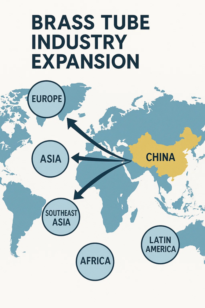 Producenci rur mosiężnych stopniowo rozwijają się na rynki globalne, szczególnie w Azji, Europie i Ameryce Północnej. Jako największy na świecie producent i konsument mosiężnych rur, Chiny stały się kluczowym ogniwem w globalnym łańcuchu branży mosiężnych. Stale poprawiając jakość produktu i innowacje, wielu krajowych producentów mosiężnych rur jest teraz w stanie zaspokoić popyt na rynku międzynarodowym.