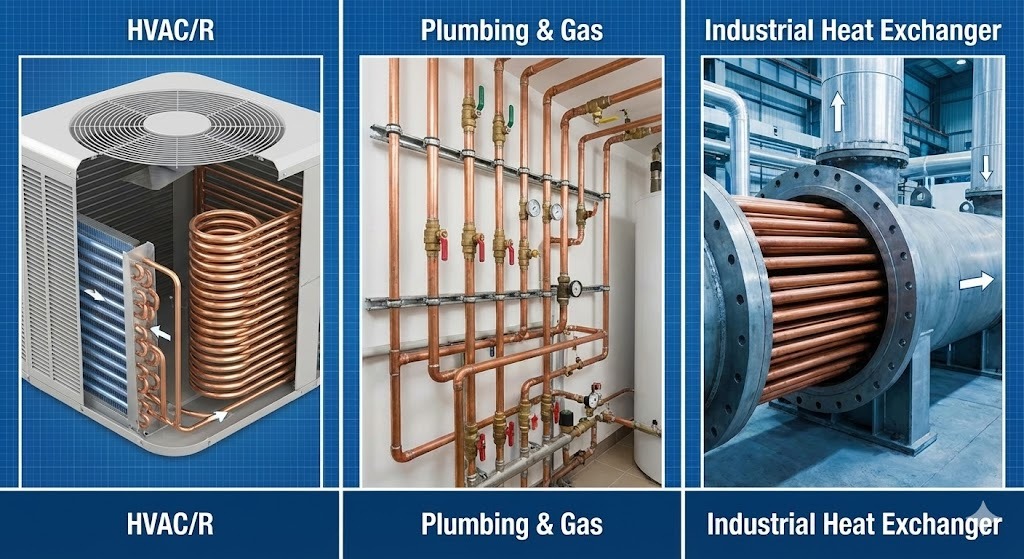 Rury miedziane TP2 stanowią „układ krążenia” nowoczesnej infrastruktury. Ze względu na unikalne połączenie odporności na korozję i wydajności cieplnej są niezastąpione w: