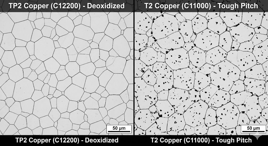 O: Miedź T2 zawiera śladowe ilości tlenu, który powoduje „kruchość wodorową” podczas spawania, prowadząc do pęknięć. TP2 jest odtleniony, co oznacza, że można go wielokrotnie lutować i spawać bez utraty integralności strukturalnej.