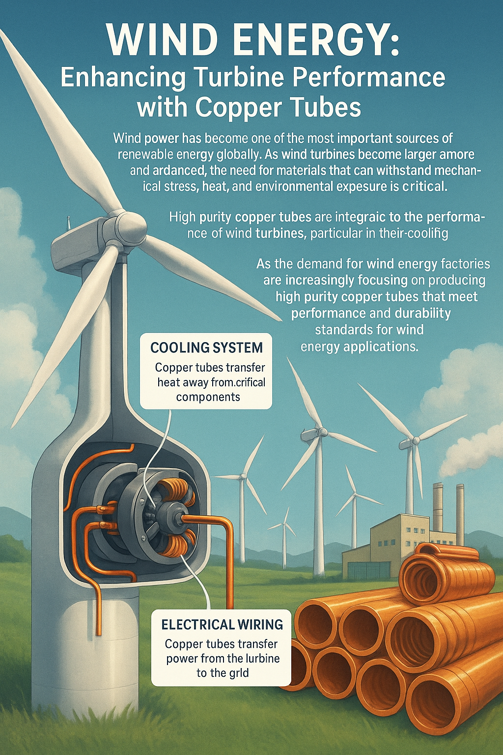 Energia wiatrowa stała się jednym z najważniejszych źródeł energii odnawialnej na świecie. W miarę jak turbiny wiatrowe stają się coraz większe i bardziej zaawansowane, zapotrzebowanie na materiały odporne na naprężenia mechaniczne, ciepło i ekspozycję na środowisko nabiera krytycznego znaczenia. Rury miedziane o wysokiej czystości są integralną częścią wydajności turbiny wiatrowe , szczególnie w ich systemy chłodzenia i electrical components.